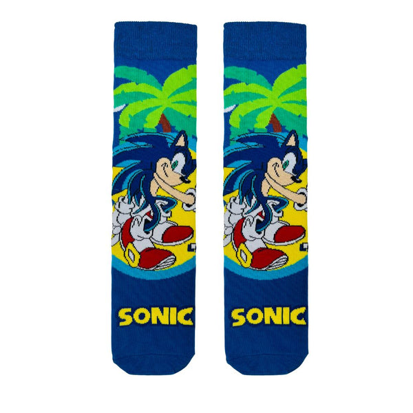 Speed into style with these Sonic the Hedgehog Crew Socks! Featuring the legendary blue speedster in front of a tropical backdrop, these socks bring classic video game energy to your feet. With bold colors, sharp details, and the iconic “SONIC” name, they’re a must-have for gamers and retro lovers.