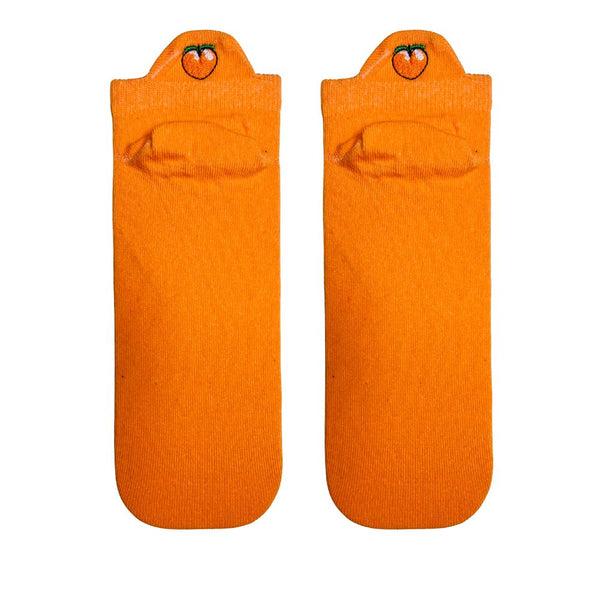 Bring a fresh and fun vibe to your outfit with our Peach Embroidered Orange Ankle Socks featuring a cute peach design on the heel. These unisex socks fit sizes 34 to 45 and are made from breathable, soft fabric for all-day comfort. The snug fit keeps them in place, making them ideal for sneakers, loafers, or casual shoes.