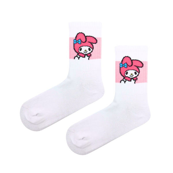 Step into sweetness with these adorable My Melody Embroidered Tennis Socks! Featuring a crisp white base and a pink block with the iconic My Melody character, these socks are perfect for Sanrio fans and kawaii lovers. Soft, breathable, and sized to fit EU 35–45, these crew socks bring both comfort and cuteness to your everyday outfits.