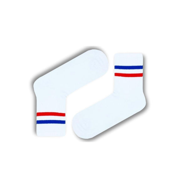 Bring back that vintage sporty vibe with these red and blue striped retro socks. Designed for everyday comfort and timeless style, they're perfect for casual wear, workouts, or streetwear looks.